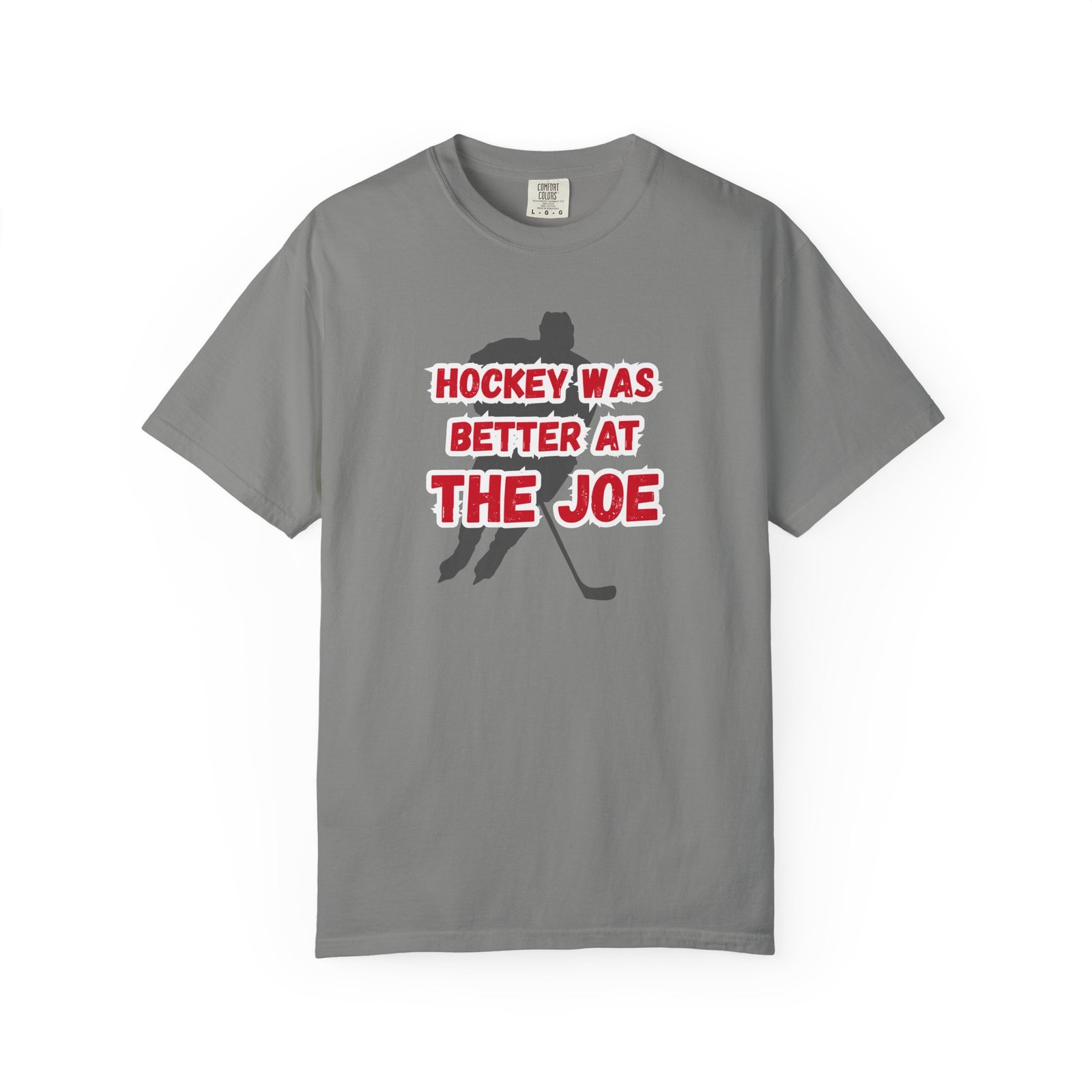 This heavyweight, garment-dyed tee pays tribute to the nights when hockey was louder, grittier, and unapologetically Detroit. Featuring a bold retro graphic of a silhouetted skater and the line “HOCKEY WAS BETTER AT THE JOE,” this shirt feels broken-in from day one — like it’s already survived a few triple-overtime classics…and a few Stanley Cups!