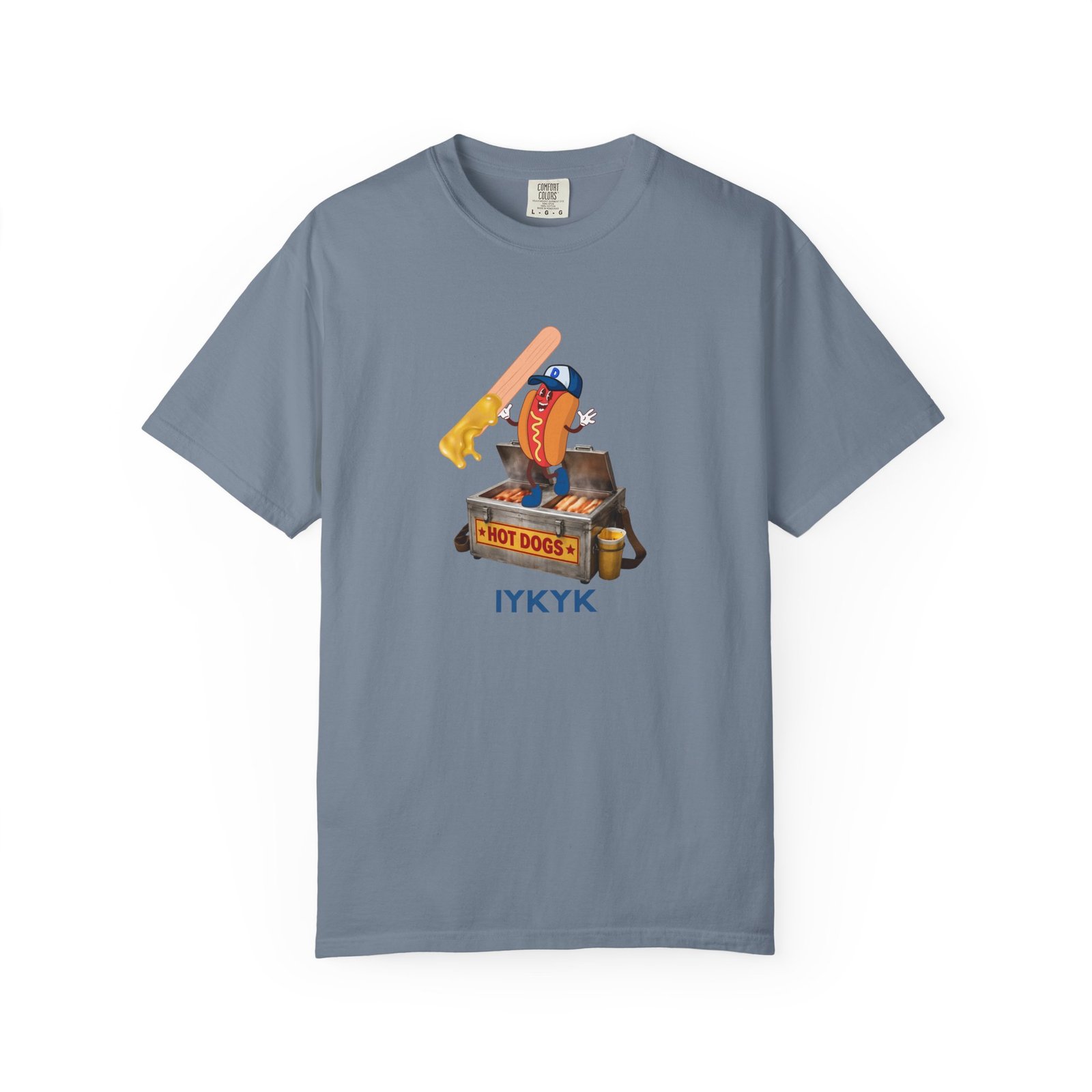 Front and center, the playful hot dog vendor graphic paired with “IYKYK” says everything — and nothing — at the same time. It’s a nod to a time when hot dogs were served out of steaming metal containers, ballpark memories, and those spots you only learn about by being there. Wear it to the game, the backyard cookout, or a casual night out. If they know, they know.
